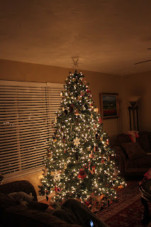 of Christmas books and ornaments we have collected over the years. We certainly don't have the "prettiest" or "most perfect" tree-but it is SO FUN to see the ornaments that we